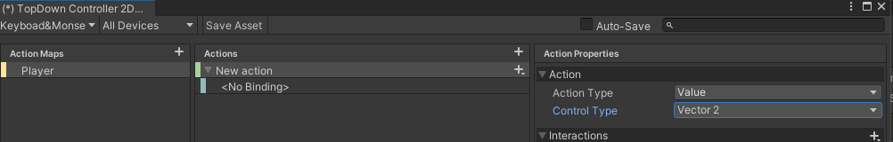 대충 playeinput컴포넌트으로 입력을 받아오는데 입력값을 받아오는 조건이 TopDownController2D 를 통해서 정해져 있고