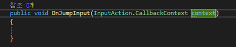 InputAction.CallbackContext를 받아와야 PlayerInput 컴포넌트의 Event에서 적용할수있는 메서드로 뜸