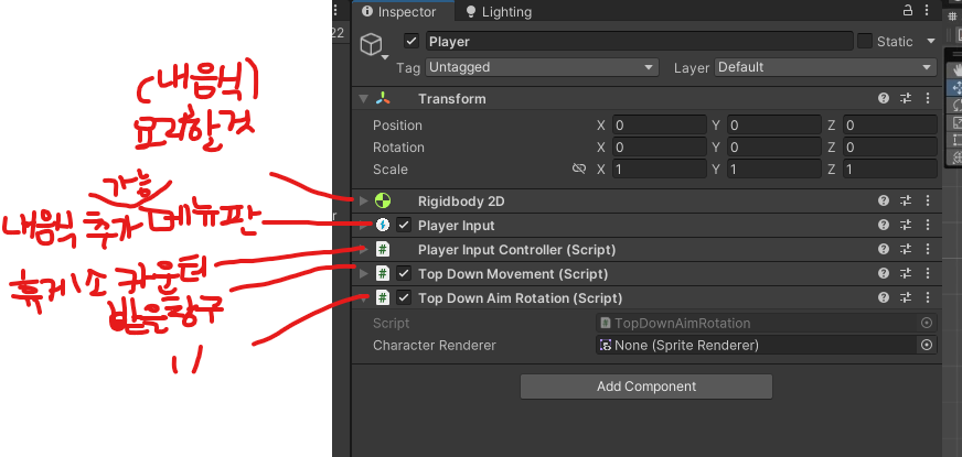 _controller = GetComponent<TopDownCharacterController>();//나라는 오브젝트에 TopDownController와 TopDownMovement가 달려있어야함