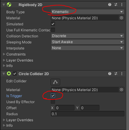 대신 충돌을 감지를 못해서 중력의 영향을 안 받을 때에는 Is Trigger을 체크해줘야한다