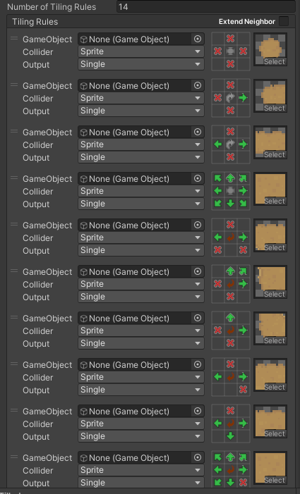 룰타일 로테이션 으로 14개로 전부 만듬 땅파는룰타일
